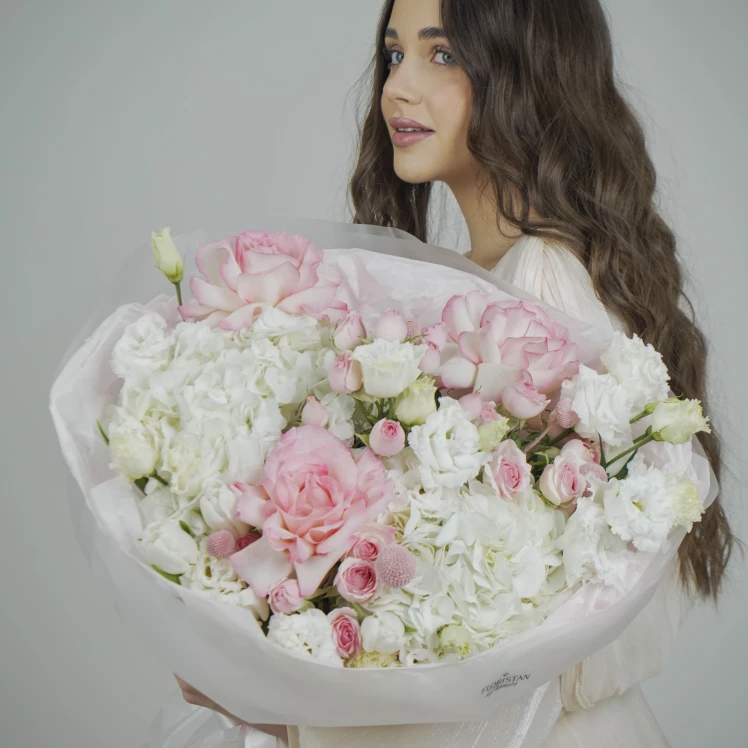 «Angel Kiss» — это больше, чем цветы. Это эмоция, застывшая в идеальной форме. Для Неё, чья красота и доброта кажутся неземными. Этот букет говорит о восхищении, которое лишено тяжести, о любви, которая легка как дуновение, и о признательности, идущей от самого сердца.