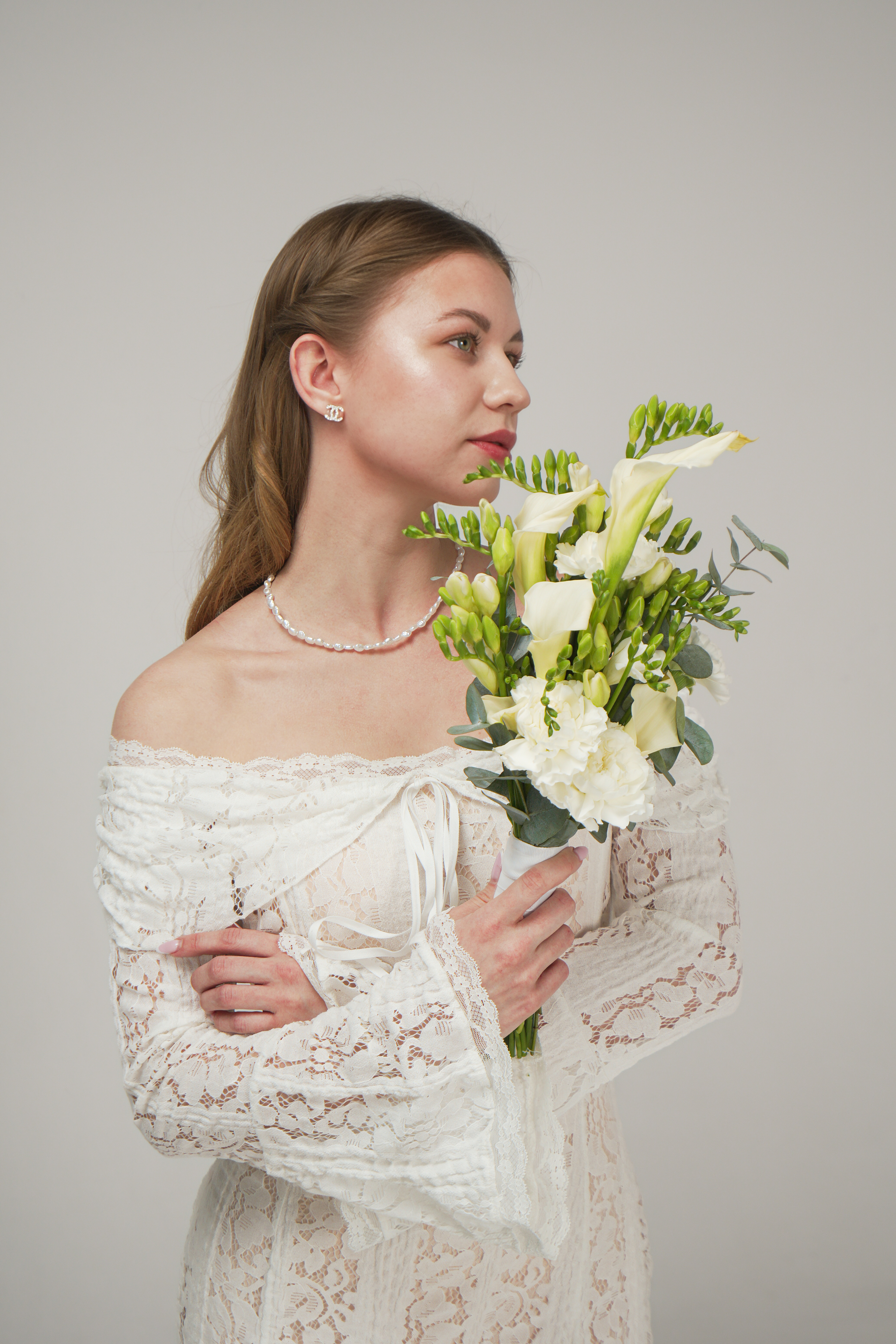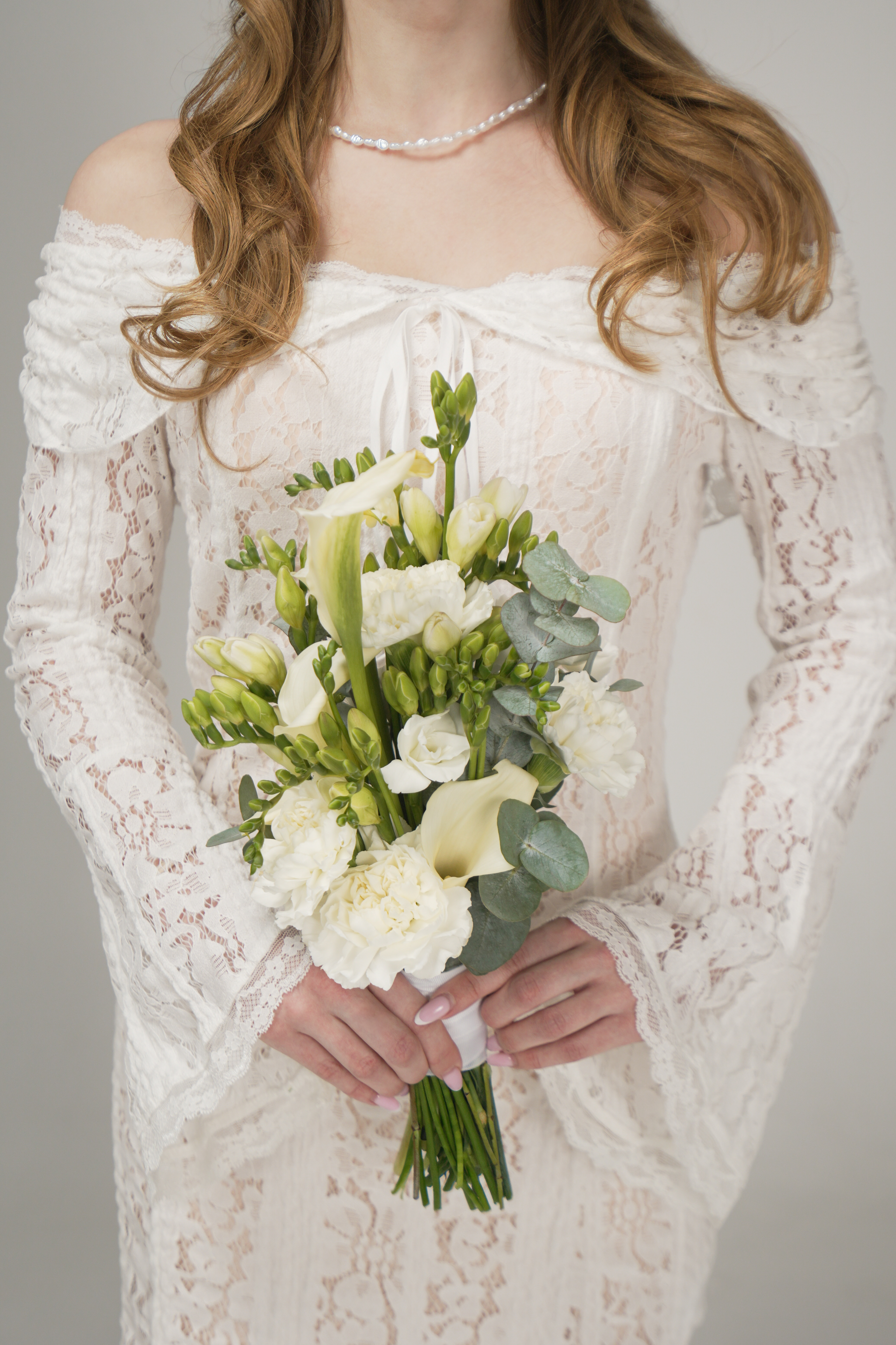 Букет «Свадебный букет с каллами и фрезией»