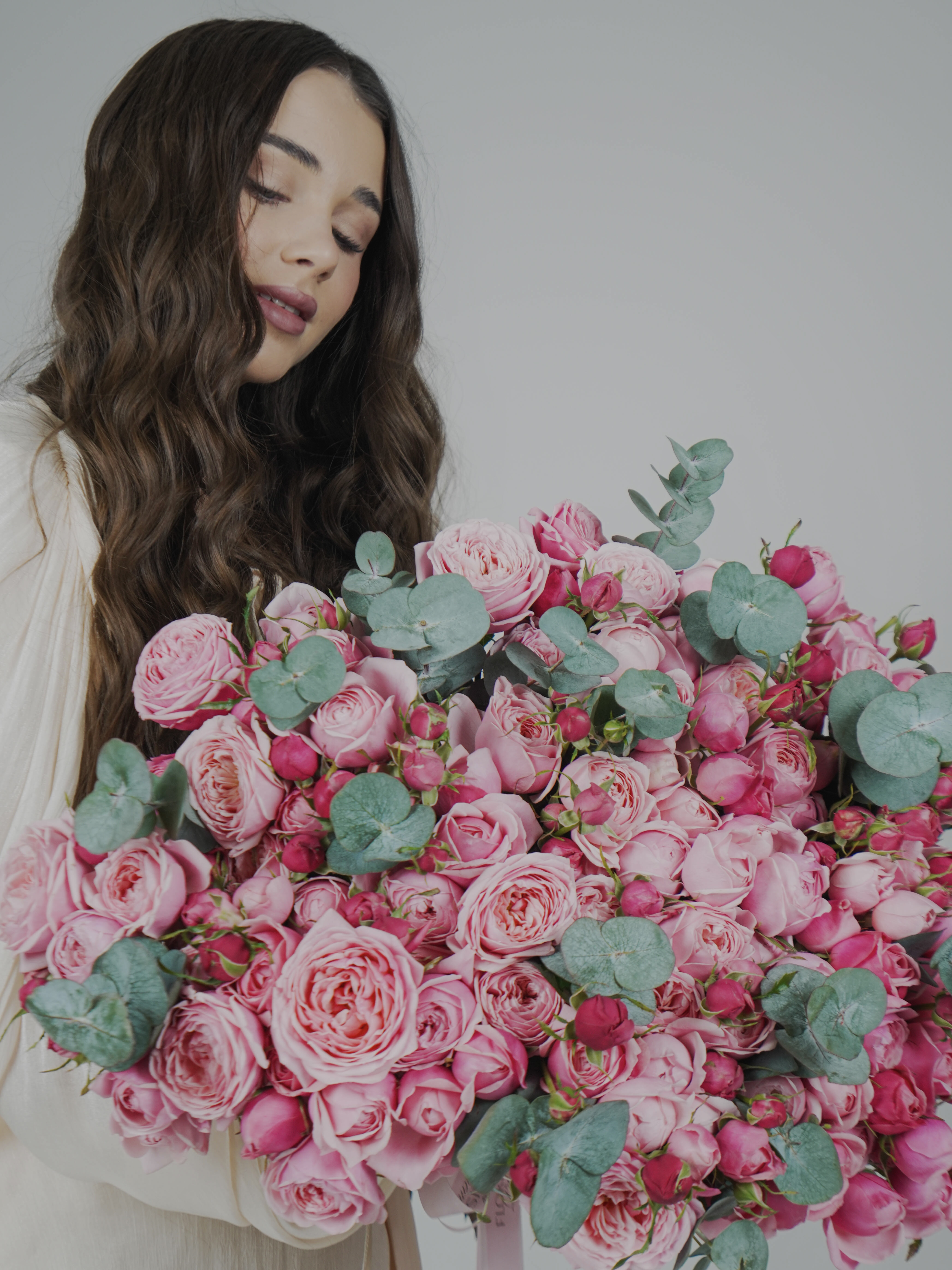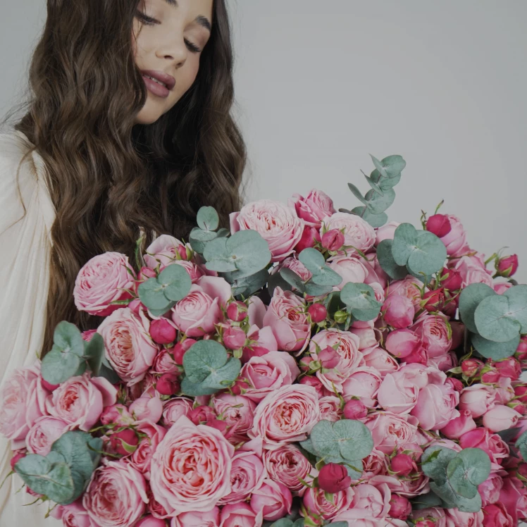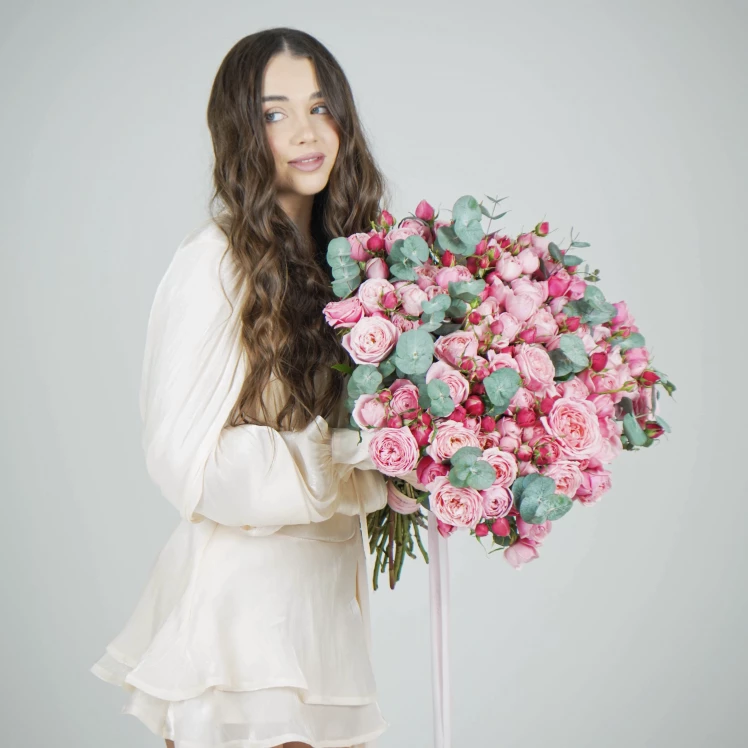 Этот букет — воплощение трогательной и искренней романтики. Пионовидные розы, напоминающие пышные старинные сорта, говорят о глубокой, уютной и сердечной любви, той, что становится только крепче с каждым днём.